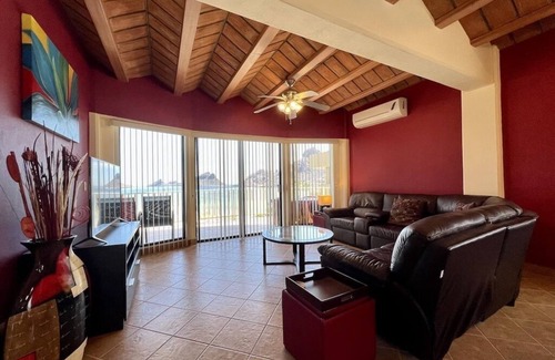 Condo located on top floor with great views of the Bahia & San Carlos. This property has 2 bedrooms, each with a king size bed, and 2 bathrooms, making it an ideal option for a small family or a couple getaway. Kitchen is fully equipped for at-home meals, if that's what you prefer or grill some burgers and hot dogs on the barbecue. Renters have access to the on-site pool and jacuzzi, as well as the barbecue in the pool-side common area. No pets allowed.
