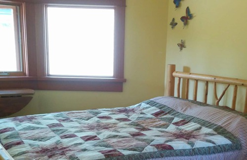 Beautiful bright 3600 sq. ft custom home with Timber accents, overlooking Selkirk mountains. 4 Bedrooms (1 king, 2 Queens, 2 twins), 2.5 bathrooms, sleeps 8. Gourmet kitchen,well appointed, fireplace, private deck and patio allowing for sun or shade any time of day, cable TV, VCR, and WIFI. Family friendly. No smoking. NO pets. Perfectly located between Nelson and the Slocan Valley. Just a quick 10 minutes to Nelson. Hiking and walking trails less than 5 minutes away. Multiple beaches within a 10-15 minute drive, 25 minutes to WhiteWater Ski Resort and 35 minutes to Red Mountain in Rossland.