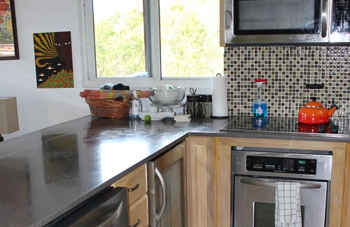 10 minutes from the airport and 20 minutes from town, this contemporary 800 sq. ft cottage is located a short walk from Lambert Beach's pristine, never crowded shore. Explore hidden coves at the beach’s western end. Observe sea turtles on their annual visit to nest and hatch.