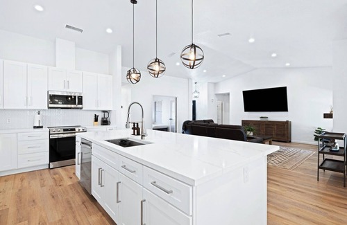 The home features an open floor plan that connects the living room, kitchen and dining areas. The main living room is an excellent place to relax and enjoy each other’s company. It is equipped with a 85" 4K Smart TV and HIGH speed internet which allows you to stream cable TV and your favorite apps.