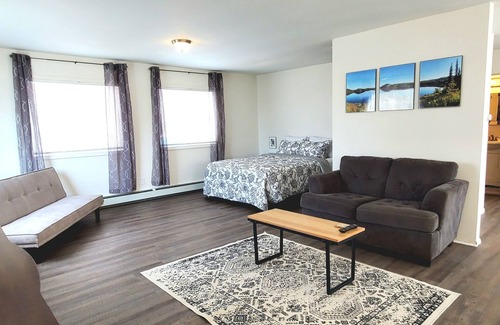 Corner studio with full kitchen, 800 sq ft- Sunny views include Mt. Susitna | Apartment in Anchorage
