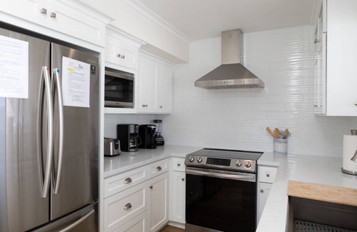 This beautifully remodeled condo is situated in an incredible location just above the beach and tidepools and has its own private deck (as well a separate, large shared deck). With views from the Cayucos pier all the way to Morro Bay and Morro Rock, this is the perfect, relaxing spot to enjoy the sunset and watch the surfers catch some waves. Everything in the unit is brand new - from the floors and appliances to the furnishings and linens. This unit also offers an electric fireplace, flat screen TV, Wi-Fi, and its own stackable washer and dryer, which can be rare in these condos. This unit is also on the ground floor and requires no stairs! Additional larger laundry facilities are available in the coin-operated laundry room onsite. SMALL PET (30 lbs or less) ONLY. Parking for one vehicle only onsite; additional parking is on the street only.