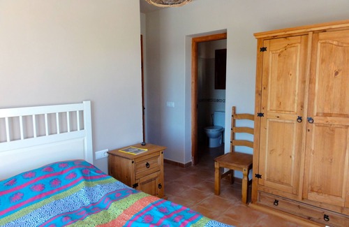 Once there, you will find all the comforts for a great vacation. Indeed, the Cortijo has 3 bedrooms, 2 bathrooms (shower and bath), a large living room with stove, dining-room, separate kitchen, large terrace, pool, barbecue, with around Natural stones and tree-lined. Although located in the countryside, the house has all the amenities one can hardly do without today: running water, electricity and wifi ....