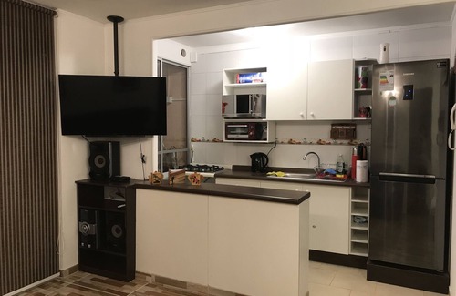 Mi departamento est nuevo, en el segundo piso, todo de cermica y porcelanato, tiene 3 dormitorios y 1 bao, habilitado para 6 personas, con cama matrimonial, 3 individuales de una plaza y un sof cama, con televisin por cable en living y dormitorio, Smart TV Sony de 48 y 42", equipo de msica, Wi-Fi, lavadora, aspiradora, plancha, secador de pelo, todo lo necesario para cocinar, hervidor elctrico, cafetera, hornito, etc.