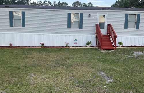 Stay comfortably in Shallotte at this 3-bedroom mobile home. This cozy property features 1 king bed, 2 twin beds, and 1 full bed, perfect for families or friends traveling together. With amenities like an iron, AC, washing machine, and WiFi, you'll have everything you need for a relaxing stay. The 2 bathrooms come equipped with a shower and hair dryer for your convenience. We hope you'll enjoy your stay at our home.