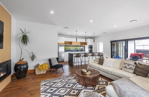 The home has three double bedrooms with an ensuite off the master bedroom, open plan living/diving areas accompanied by a fully-equipped kitchen, as well as a second TV room adjacent to the kitchen which is perfect for the kids. With a swim spa, outdoor fireplace, BBQ and covered deck, this home is a perfect summer getaway spot for families looking to spend some quality time together.