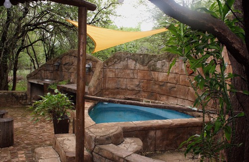 Our cottage does not have a TV - instead: you have 'African Bush TV' - your giant 'Outdoor Plasma' whilst relaxing around the outdoor boma braai (BBQ) or in the splash pool and enjoying the animals walking right up to the small wall separating the cottage garden from the parkland area.