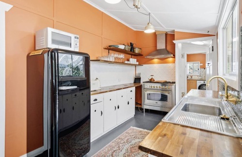If you are looking to sleep 8 guests, the RESTORED RETRO CARAVAN is next to the Cottage in the garden and sleeps an additional 3 guests in a KING and KING SINGLE. This would suit older children as a fun 'sleepout' type experience or additional adults. There is heating in winter and fly screened windows in Summer. Additional nightly rate apply over 5 guests.