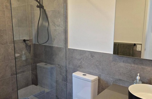 Beautiful new 2 bedroom guesthouse, modern bathroom, kitchen and deck overlooking the beautiful Ocean Shores Golf Course - whether you play golf or not this cabin is in a perfect position minutes away from the stunning local beaches, eateries, river and 10 minutes to Byron Bay.