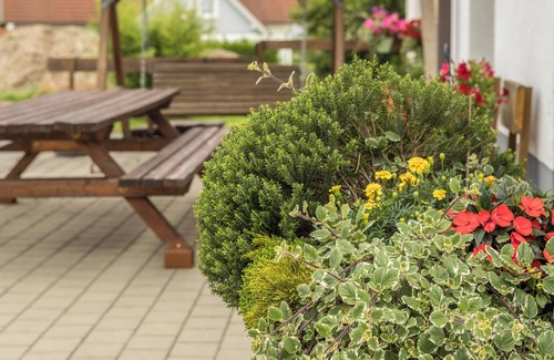 The well-furnished apartment “Meersburg” is situated on the “Ferienhof Sauter” farm outside of Neukirch, between Friedrichshafen and Wangen im Allgäu, and is perfect for relaxing holidays in the beautiful Lake Constance hinterland. The 35 m² apartment consists of a living area with a double bed, a well-equipped kitchenette as well as one bathroom and can therefore accommodate 2 people. Additional amenities include Wi-Fi, a washing machine, satellite television, up to 2 baby cots (on request) and a highchair. The apartment has a balcony where you can start the day with a coffee and great mountain views, while the spacious communal outdoor area with open and covered terraces is ideal for breakfast or spending the evenings with a glass of wine and delicious barbecued dinners. You can enjoy the sunshine in the garden while your children rimop around the playground. In the village of Neukirch, a 4-minute drive (2.3 km) away, you will find a supermarket, a restaurant and cash terminals, and a bakery can be found 5 km or an 8-minute drive away in Neuravensburg. In the town of Wangen, a 13-minute drive (10 km) from Neukirch, there will be many shops, cafés, restaurants and pharmacies. The area offers numerous great hiking and cycling opportunities through scenic landscapes, and the popular hiking route “Hasenpfad” starts a 13-minute drive (8.7 km) from the apartment. In winter, a skiing area can be reached after 10.4 km or a 15-minute drive. The closest beach, where you can swim in the clear blue water of Lake Constance with lovely views of the Swiss Alps in the background, is a 21-minute drive (18.5 km) away, in Kressbronn. The pretty centre of Friedrichshafen, a 29-minute drive (22 km) from Neukirch, invites you to visit the Zeppelin museum, stroll about the lake promenades and explore its beaches. Furthermore, guided hiking tours are possible on request or you can explore the scenic, hilly area by bike, which can be provided by the homeowners.
