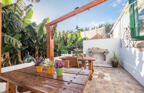 On the rugged west coast of Tenerife, just a few steps from the sea, in the heart of a vast banana plantation, you will find the Canarian style house "Casa Sabina". As one of a total of 6 houses, it was built over 70 years ago to accommodate harvesters, it is now - after a complete renovation - the perfect place to spend relaxing holidays without hustle and bustle and without crowds of tourists on the largest Canary Island.