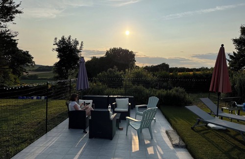 A mixture of traditional French country cottage and modern home comforts, the Alouette shares the grounds with a second 3-bed gite, Faucon and our farmhouse. We have private parking and a secure space to store bikes and roof boxes. The large pool is fully enclosed (gate and lock) and is shared with the other guests (and ourselves), along with the beautiful gardens, boasting stunning sunsets. The Alouette has a private terrace with a coal barbeque for outside dining. The cottage boasts a modern fully-equipped kitchen, comfortable lounge-diner with smart TV, free WIFI, a large bedroom with a 160x200cm bed (fitted mosquito nets, cooling machine and fans for a good night's sleep) and ensuite walk-in shower. There is a second toilet on the ground floor. All sheets and towels are provided, but we ask you to bring your own swimming towels. Dogs are very welcome - we have a friendly French female bulldog, and the grounds are fully enclosed with a secure gate. The closest town with all amenities, bars, restaurants and a lake (with slides and water sports) is just a 5-8 minute drive away. There are larger towns 15-30 minutes' drive away. A car is a must (we offer electric charging at an extra cost). We are 30 minutes from Auch train station, 50 minutes from Agen train station and 1h15 from Toulouse airport. The area is full of fantastic wineries, and we will be happy to recommend some good domaines to taste and buy wine (or beer). Other activities in the area include canoeing, golf, cycling and walking. We are keen runners and cyclists and can recommend a number of routes through the endless fields of sunflowers and vineyards. Or you can simply enjoy one the of the many festivals or local markets in the area. If you wish to rent both cottages together (4 bedrooms, 4 bathrooms for 8-10 people) please contact us for more information. We only accept bookings for a maximum of 2 weeks. We speak English, French and a little Dutch and German.