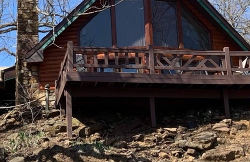 This modern A-frame cabin will welcome you with a serene, open concept interior with cottage touches throughout, tons of natural light, and a large deck with a treetop lake view of Tenkiller.