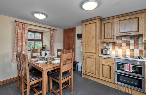 Prepare for an extraordinary family escape at this magnificent retreat on the enchanting Cardigan Bay Coast, where coastal luxury meets serene surroundings. Immerse yourself in the tranquil ambience of nature, indulge in idyllic countryside strolls, and create timeless memories with your loved ones in your own private oasis. Your adventure continues in the sprawling enclosed garden – a private sanctuary with a manicured lawn, patio furniture, gas barbecue, and a clothesline. The pièce de résistance is the luxurious six-seater hot tub, perfect for soaking away the day while taking in panoramic views. This stunning cottage provides breathtaking views of rolling hills and is conveniently located just one mile from the charming village of Tal-y-Bont, where you can find delightful pubs, shops, and a children's play area. Explore nearby beaches such as Borth and Ynys Las, or venture to the picturesque towns of Aberystwyth and Machynlleth. Step inside to find a beautifully appointed kitchen-diner, featuring a large dining table for shared meals, modern conveniences like a fridge-freezer, electric cooker, and dishwasher, along with a cozy sitting area equipped with TV and Wi-Fi. With slate-tiled flooring throughout, the space is designed for comfort and functionality. A utility room connects to a generous back patio, complete with a washing machine and tumble dryer for added convenience. The ground floor also features a stylish bathroom with an over-bath shower, while the inviting sitting room is perfect for family gatherings, featuring oak flooring, a comfortable three-piece suite, Freeview TV, and a gas fire, with French windows that open onto a patio furnished for alfresco dining. Venture upstairs to discover two spacious family bedrooms, each with en-suite shower rooms adorned with slate tile flooring. These beautifully curated spaces include king and single beds, dressing tables, wardrobes, and bedside cabinets, ensuring a restful retreat. Enjoy picturesque glimpses of the sea from the lower bedroom's window. Bed linen and towels are provided for your convenience, and for families with little ones, a travel cot, high chair, and stair gate are readily available. Free parking adds an extra layer of ease to your stay.
