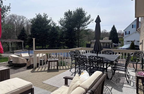 Relax by the pool during the day, hot tub and fire-pit at night. Outdoor cooking on grill, griddle and pizza oven. Sprawling deck and outdoor sitting/dining area. Partially fenced yard. Wonderful Litchfield and Farmington valley restaurants, winery’s and hiking nearby. Gourmet kitchen, tastefully decorated, three bedrooms, 1full, 1 1/2 bath, 1st floor laundry, yoga room, situated on two acres. Pool is closed Labor day through Memorial Day