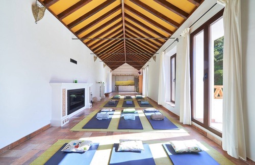 • Yoga Room: 80 m² with panoramic windows, fireplaces, integrated kitchen and terrace. Ideal for classes, talks, group sessions or presentations.