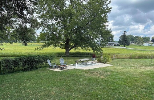 Experience the best of country living in a quaint small town with everything you need for your next getaway in this cozy two-bed, two-bath home. With open fields to the north and east, this home boasts the feel of a homestead with its covered deck that overlooks the secluded, fenced-in back yard. A short walk or drive delivers you to the town square, where you'll find a farmer's market, art fairs, and outdoor movies in the summer months. Down the street, you'll find a fantastic coffee shop, gift shop, theatre, Mexican restaurant, and local bar.