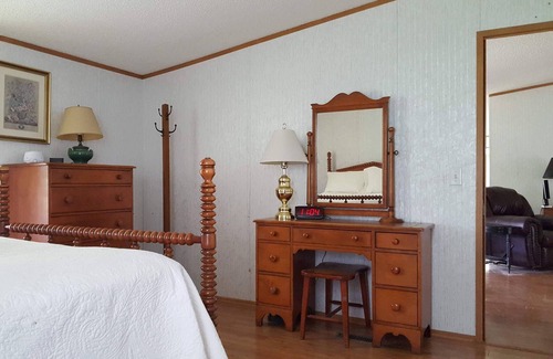 Double wide mobile home in a country setting. Two bedrooms, two full bathrooms with a double bed in each room. Porches on the front and back to sit and enjoy the southern evenings. Other homes are near, but not totally visible. One hundred private acres behind you to walk, hike and explore. Over the air television only, no internet provided. 17 miles to downtown Greenville, SC, 34 miles to Death Valley for Clemson football, 35 miles to Hendersonville, NC, 56 miles to Asheville, NC, 19 miles to the top of Caesar's Head for the best view in South Carolina.