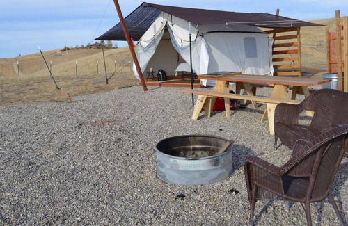 Situated on the hills over looking Paso Robles "Wine Country", this wall tent is the perfect spot to get away and unplug from the hustle and bustle of the world. Coyote Flats is a seasonal spot.
