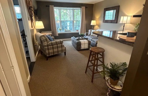 Relax in a comfortable and cozy space after a winter day on the ski slopes. Enjoy all of the amenities of the on premise hotel with the benefit of your own private space. Easy access to shared washers and dryers. Complimentary coffee bar in the morning and afternoon in hotel lobby. Great tavern on site as well as another fantastic eatery within walking distance.