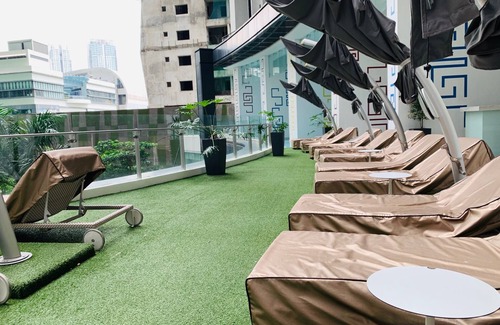 Cozy, Modern, Minimal & Contemporary-styled 1-bedroom unit in a Versace Home-designed Condominium. Floor Area: 27sqm with balcony. 50 mpbs Wifi. Netflix. Cable. Double-size with pull-out bed. Floor Mattress. Sofa. Kitchen wares & utensils. Hot & Cold shower. Closet Cabinet with hangers. Flat Iron. Gym. Pool. Sauna. Steam. Basement parking space available for a Fee. Personalized Access Card. 24/7 Concierge/Reception Desks. Enjoy the amazing city view at the balcony with our lovely thatched chairs!