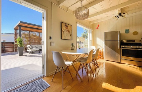 Welcome to our adorable and charming little beach house, just moments from the sea! This extremely clean and light-filled house couldn’t be more fun and filled with whatever you might need to make your stay in beautiful Cayucos more perfect. With peeks of the ocean and the sound of the waves, it includes 2 bedrooms and a bath, a fully equipped kitchen, patio outdoor shower, completely enclosed back yard with large deck, pergola, build in BBQ, dining table, outdoor lounge.