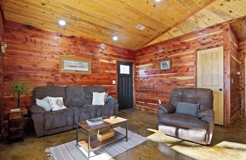 New construction, rustic cabin with a million dollar view! Located in Cotter Arkansas, better known as "Trout Capital USA." Conveniently located just .25 miles from Big Spring park, coffee shops, and diners. Several local fishing guide services are available. Enjoy all modern amenities like fiber optic internet and a fully stocked kitchen. Boats are welcome. There is ample parking available. kayak and shuttle services are available for any nearby river, please message us for further details.