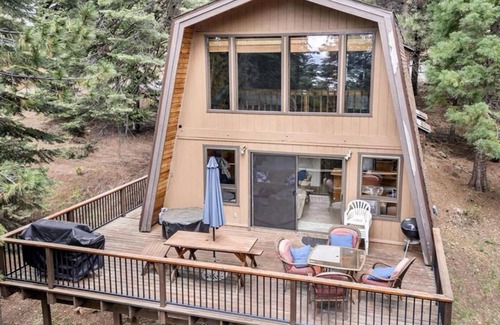 Beautiful A-frame cabin with brand new appliances. Cozy and fit for a family vacation! 5 mins to lake. Cabin is part of the Lake Almanor Country Club so you have access to all those amenities; beautiful recreation areas, parks, marina with boat launch access, golf course and restaurants. Enjoy the live bands in the summer time and boat/jet ski rentals at the marina to play on in the water! In the winter enjoy the sledding, trails and beautiful winter snow fall.