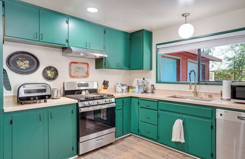 The kitchen is a dream for any home chef, fully equipped with a gas range, stainless steel appliances, a cheerful breakfast nook, and even a pizza station for fun, family-style meals. After dinner, head to the game room and shoot some pool or enjoy classic board games.