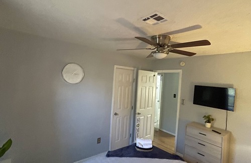 This home offers newly constructed floors, fresh paint, and a modern feel to generate a charming ambiance in this home away from home. Take time to unwind peacefully in one of our 4 beds. Free high-speed Wi-Fi and a Smart TVs in every room with local channels and every popular app — Netflix, Amazon Prime, Hulu, Disney, and more is provided. The open concept living room offers plenty of space for you and your family to enjoy comfortable seating.