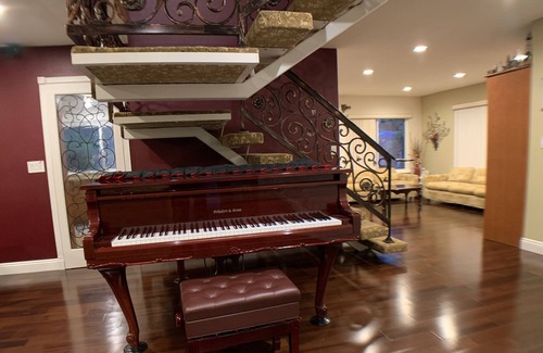- Please do not place any objects on the grand piano and please play piano with care.