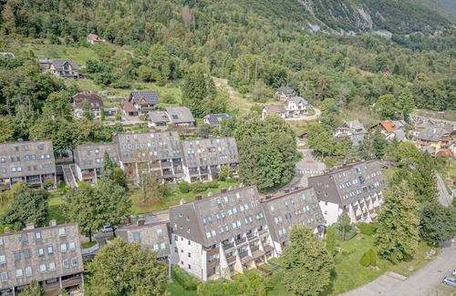 The property is located in northwestern Slovenia, in the picturesque town of Bovec. The apartment complex is situated in the Soča Valley, surrounded by the Julian Alps offering endless opportunities for outdoor activities such as hiking, skiing and cycling. The property is a 5-minute from the emerald waters of the Soča River. Renowned for its crystal-clear waters the river is perfect for whitewater rafting, kayaking and fly fishing.