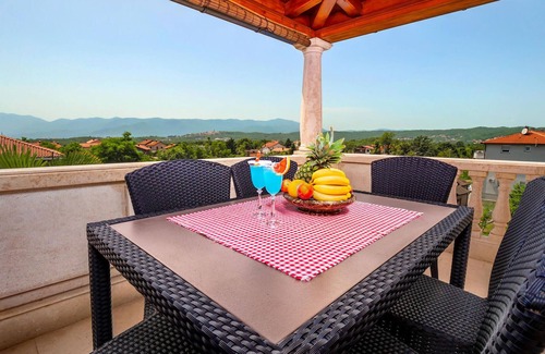 This comfortable and spacious holiday apartment with swimming pool is located in Viskovo, a quiet neighbourhood of the city of Rijeka. The entrance and the property are separate from the part used by the owner, so you will have complete peace and privacy. At your disposal are three bedrooms, a kitchen, a living room, a bathroom and an open balcony as well as two covered terraces. There is a gas barbecue on one terrace. The location of this domicile is ideal for day trips to Rijeka, Opatija, Crikvenica or the island of Krk, and thanks to the good road connection you can easily reach the Istrian peninsula, with the well-known tourist destinations such as Pore, Rovinj and Pula. We also recommend a tour of the picturesque town of Kastav and a visit to the Uka Nature Park, which will delight you with its natural beauty.