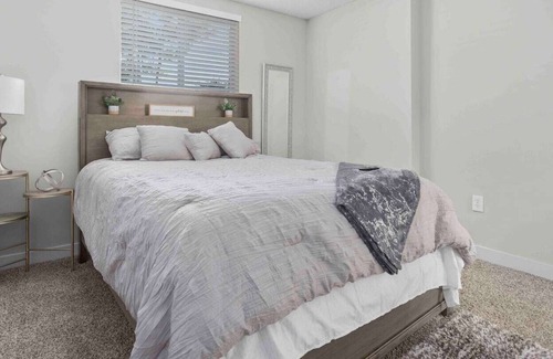 Relax alone, with friends or with the family at this peaceful and relaxing stay with a beautiful lakeside view. Our place is a comfortable and cozy 2 bedroom 2 bathroom apartment for any length stay!
