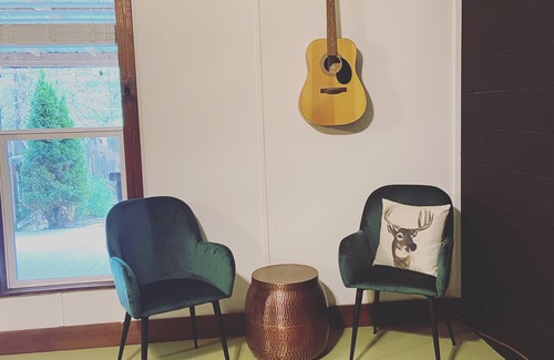 The Woods is a peaceful Cabin set back on 5 acres with its own private, fully stocked pond! Bring your fishing poles. (Catch and release only please) Soak in the luxury tub or read a good book on the front porch.