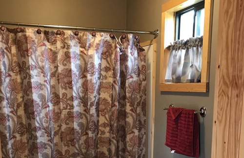 Our beautiful lofted cabin has a beautiful sunset view of the WNC mountains. We have a loft bedroom sitting area with a sleeper sofa in the living area. Efficiency kitchenette with microwave, keurig coffee maker and mini fridge. Bathroom feature single sink, tub shower combination and toilet.