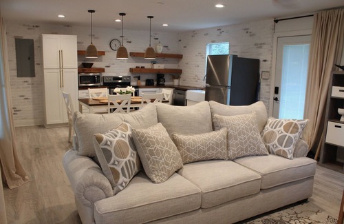 This cozy cottage was built to fit your needs for an amazing vacation and relaxation in the country. Built in 2017, this home is only a 20 minute drive to McComb and 8 minute drive from local shopping and food. Our cottage is the perfect mix of city and country living. It sits on 1.5 acre of land. Early mornings are perfect for listening to the birds sing while you eat your breakfast. There is ample amount of natural light and also a sitting area on the massive front porch. There are a couple of cats that live on this property. This home has all your basic needs and is fully stocked with all the linens and cooking supplies one could need. The living room has a queen size sleeper sofa and smart TVs located upstairs and downstairs. Access to the upstairs bedroom and bathroom is by staircase. On the second floor you have very large master with an en-suite bathroom with a washer and dryer for laundry. The bedroom has a king size bed with a couple of sitting chairs. Wifi is provided. Our location is in a quite area with access to local and major highways. There are couple of other dwellings on the property (these are not included in the rental and are regularly access by the owner.)
