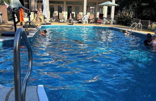 Yes, this New Albany cottage has a swimming pool. Check the Facility Overview section for details about the pool and other available facilities.