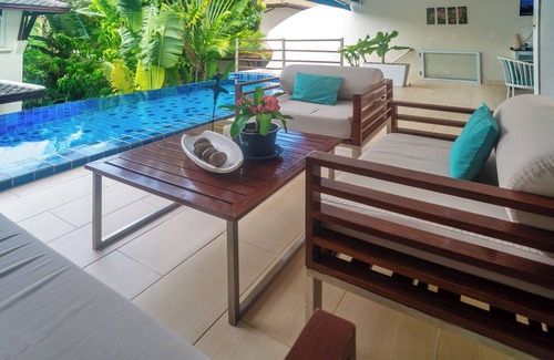Get ready to relax in this three bedroom fully serviced duplex townhouse with private pool. Located in a beachfront villa resort, the duplex itself is on the main road providing easy island access, while also offering direct beachfront access without any road crossing - about 70-meter walk through a tropical garden pathway.