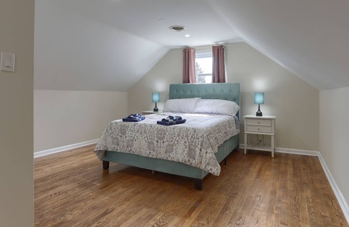 Walking distance to many local restaurants, bars, & shops and many more activities throughout the town for kids and adults. Six large BRs with Queen beds that sleeps 12. Living Room include a smart TV. Queen rooms include Dresser, mirror, Side tables with lamps and USB charging ports. New appliances, furniture, and bedding throughout. 1 Private Bathroom and 3 Shared. Large Comfortable living space and front porch. For the summer outdoor cookout enjoy with gas barbecue grill.