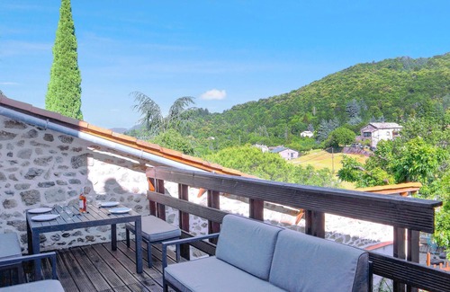 Welcome to this charming and traditional stone house set in a green garden lined by a stream in the middle of nature. This house made of noble materials offers a warm and comfortable interior, a neat decoration with soothing colors that invite you to relax and give you a feeling of well-being. It is an ideal vacation home to enjoy the gentle Ardèche countryside on the sunny balcony, during meals. An idyllic and quiet atmosphere is guaranteed.