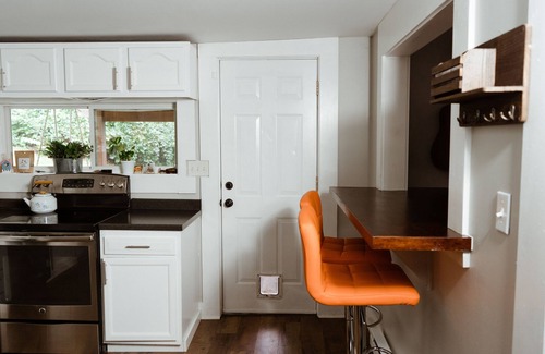 A Wonderfully Cute and Cozy 1 BR and 1 BA house located close to the parkway entrance's of Fairview rd. and Hendersonville Rd. 2 porches on the house, 1 on the front of the house and 1 on the side of the house to spend some time relaxing or drinking wine or beer. There is a firepit located on the side of the house as well. Lots of nature around, with Birds, Squirrels, Ground hogs, and the occasional wandering neighbors cat! This house is the perfect place to want to venture around Asheville for more than a few weeks. Small pets welcome! (We are located next to Interstate 40 so there is vehicle noise from the freeway).