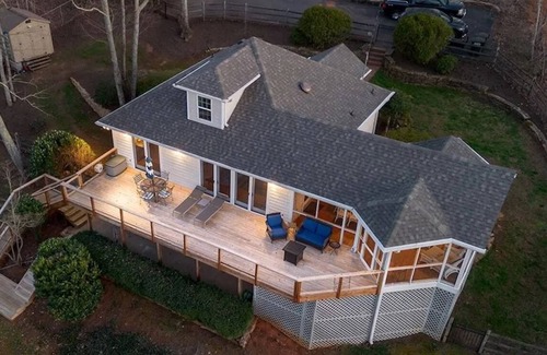 Enjoy incredible views of Badin Lake and mountain ranges! With amazing sunsets, sunrises and deep water, this home is the epitome of lake living! Main floor has a wonderful living room & kitchen along with the primary bedroom with bathroom & full bathroom for convenient living. The large windows and glass door overlooking the water is simply spectacular! The large bonus room upstairs offers endless possibilities! The basement holds another bedroom, bathroom & great bonus room! Venturing outside you will find an enormous screened porch with cathedral ceilings and sprawling views of Badin Lake making this an entertainers dream! The breathtaking water and mountain views consume all decking and porches that this property offers!