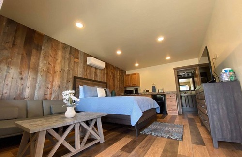 This 1-bedroom lodge is perfect for your escape to Gardiner. Nestled in the heart of the city, our phenomenal property offers a welcoming ambiance that will make you feel right at home. The cozy bedroom features a comfortable queen bed, ensuring a restful night's sleep for our guests. With amenities like a hair dryer, heating, AC, and WiFi, you'll have everything you need for a comfortable stay. The bathroom is equipped with a hair dryer and a refreshing shower. Whether you're exploring the city or relaxing in our amazing lodge, you're sure to make fantastic memories with a stay at our place.