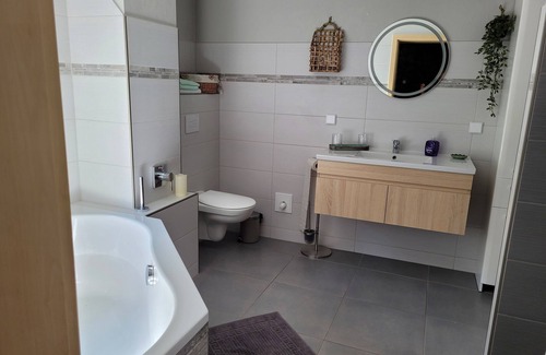 Cozy newly built vacation apartment in quiet wooded surroundings is located in Schmiedeberg. Cozy newly built vacation apartment in quiet wooded surroundings provides accommodation, featuring Pet Friendly, Security/Safety, Bedding/Linens, among other amenities. This House features Pet Friendly, Security/Safety, Bedding/Linens, to make your stay a comfortable one.