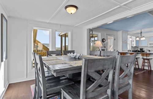 As you step inside this Nags Head rental, you'll find a comfortably furnished living room with large windows that provide breathtaking views of the Atlantic Ocean. The open floor plan seamlessly connects the living area to the fully equipped kitchen, creating a welcoming space for socializing and enjoying meals together. The four bedrooms provide you and your guest with a space to relax and unwind after a fun-filled day on the Outer Banks. Whether you're seeking a tranquil escape or an adventure-filled beach vacation, Dolphins & Dunes provides the ideal setting. Enjoy the simple pleasures of oceanfront living, create lasting memories with loved ones, and relish in the beauty of the Outer Banks at this delightful Nags Head rental.