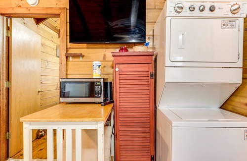 ‘CJ’s Country Cabin’ is a 1-bedroom, 1-bath vacation rental tucked away in a quaint area of Sand Gap, in the Arkansas Ozark Mountains National Forest. The peaceful area offers guests a place to relax while admiring valley views or spotting wildlife as they enjoy their morning coffee on the porch. Curl up on the couch with a bowl of popcorn and stream your favorite movie on the Smart TV, or strap on your boots and explore nearby trails like the Sam’s Throne Trail or Mack’s Pines Recreation Area!