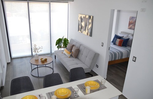 NEW modern apartment in a very exclusive zone in Guatemala City. Includes: free wifi, flat screen TV, Netflix, fully equipped kitchen, water filter, washer and dryer, hair dryer, iron, 24 hour security, underground private parking space. Amenities include: lap pool, social areas, fully equipped gym. Near things to do: 5 minute walk to Cayala, Supermaket, Pharmacy, Top Tee (golf practice range), Astro Bowling, Cayibel (gastronomic market), surf simulator pool and church.