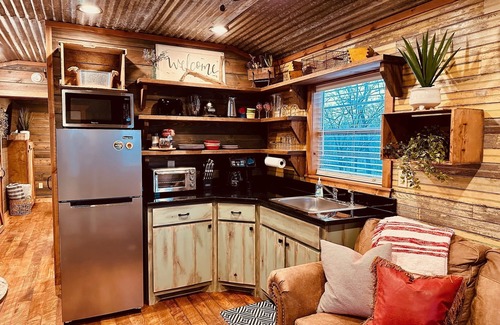 Hardin's Hideaway” is a new tiny cabin conveniently located less than a mile from the North end of Pine Creek Lake. Perfect for going fishing, boating, swimming, kayaking or just taking a stroll at the lake. With a queen bed and a queen sleeper sofa. Ideal for a couple with a child or fishermen looking for a getaway with a modest budget.