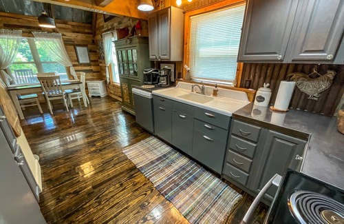 Inside, you will find a welcoming ambiance from the gorgeous hardwood floors, tin roof and two electric fireplaces for curling up on a cool mountain evening.